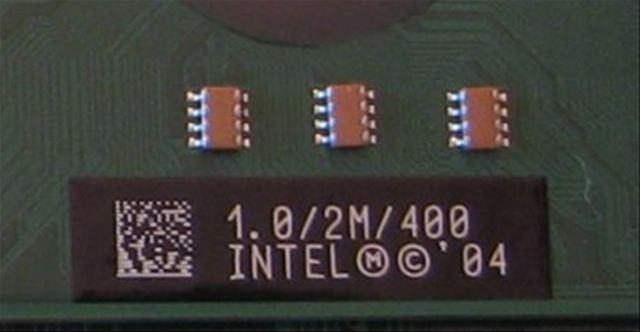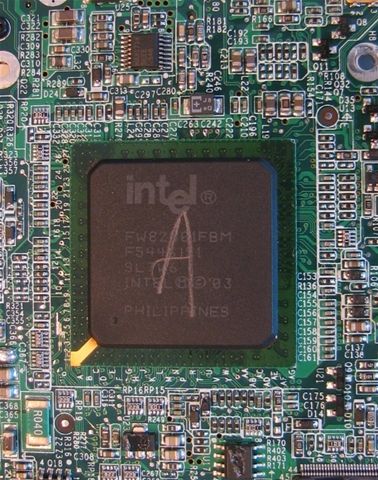 And here’s our friend, the 915GMS chip that does the audio, graphics and a whole lot more that you’ll never get to use.