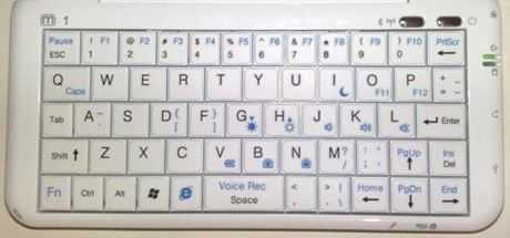 The keyboard is designed to be ‘thumbed’ while being held in two hands and in that mode, it’s a very comfortable keyboard. Numerics and Function Keys are provided along with a series of FN-shortcuts that start applications like Windows Internet Explorer and the Voice Rec(order) app which is quick and easy to use and returns good results with the built in mic. (Good for recording interviews or thoughts for transcribing.) There are issues though.