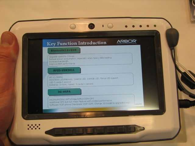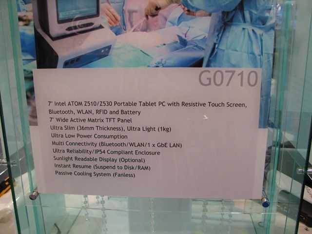 I did spot a rugged Atom-based ultra mobile PC from Arbor (7 inch, Atom, IP54) on my journeys but that was as close as I got to MID action today.