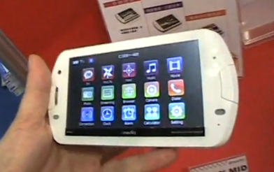 Jkk seems to have gotten his hands on many of the MIDs shown at Computex this year. Here you can see him checking out the Dmedia M0, which is a MID that looks pretty nice on the outside, but is unfortunately running Windows CE. One surprising thing is that there seems to be a decent 5MP camera on the back of the unit. There is also WiMAX and GPS. Though it looks like the touchscreen is resistive, and there is a very apparent iPhone UI ripoff as the top layer of the devices interface. I’m doubting that this think will go to international market in this form. Jump over to jkk’s site to catch the specs list.