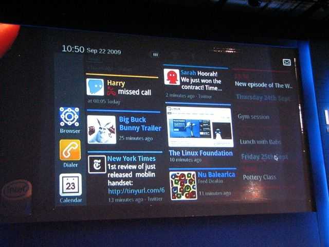 Moblin 2.1 homescreen. Similar to Moblin 1. Recent events…