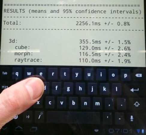 Samsung Galaxy Tab 10.1 Hands-On. Sunspider Test – Good!