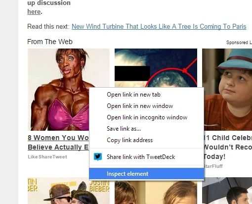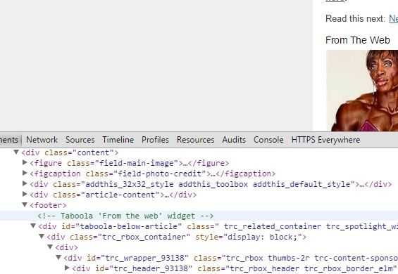 How did I find out that Taboola was being used? I used the Chrome ‘Inspect Element’ feature which you can use in any case of unwanted content that is added via script.